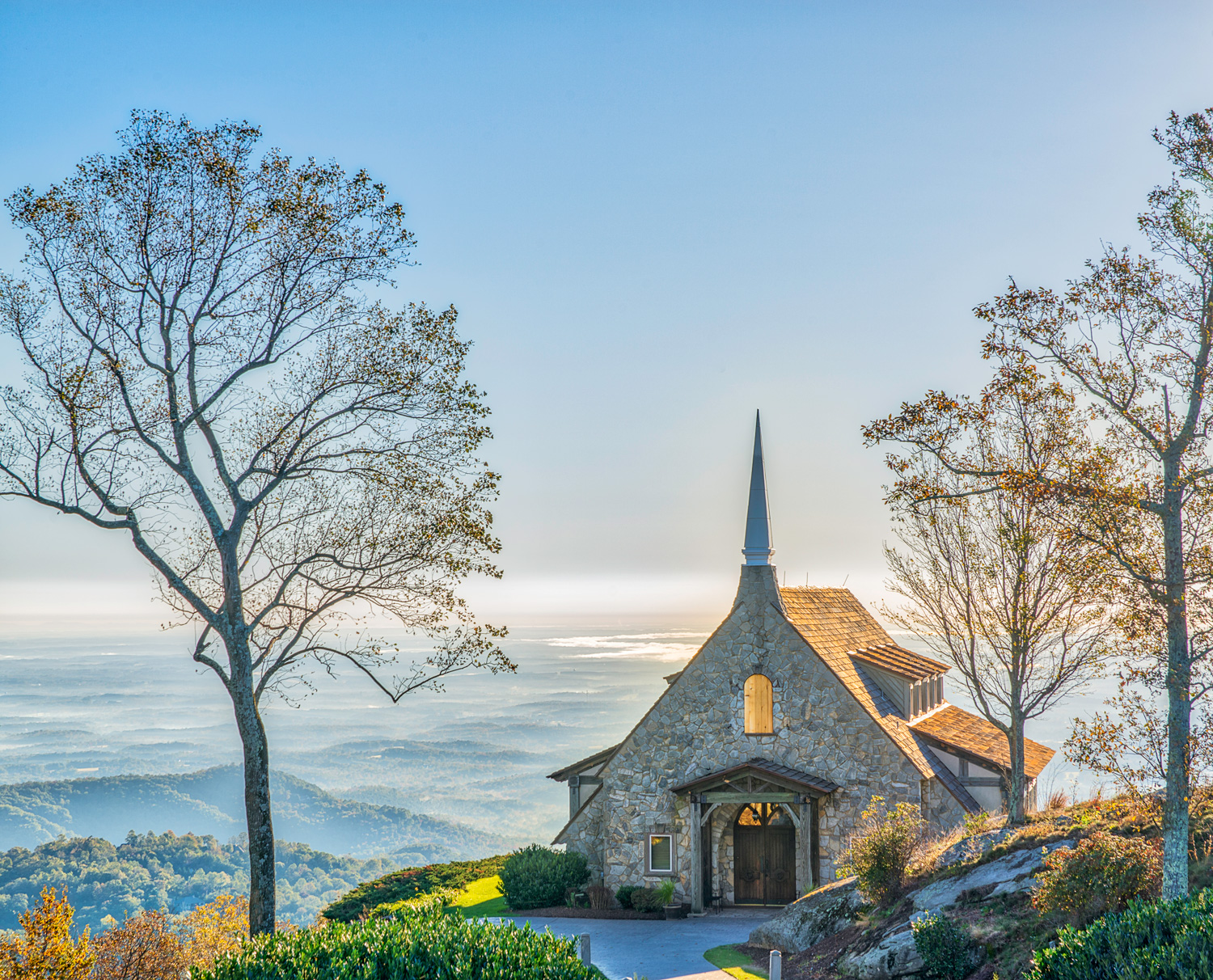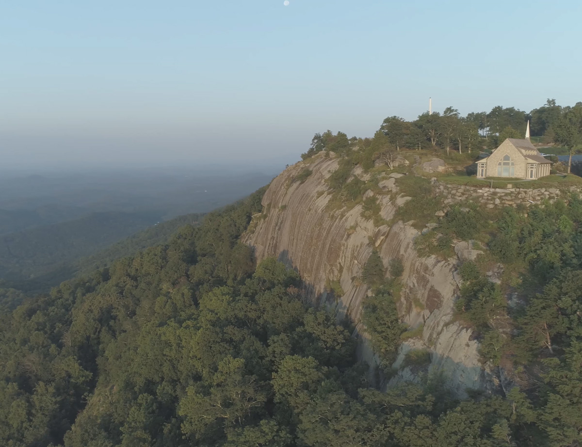 Perched on the edge of Glassy Mountain, The Cliffs at Glassy Chapel has long been celebrated as one of the country’s most breathtaking ceremony spaces. Awe-inspiring views — as far as 75-miles on a clear day — set the stage for a stunning celebration. The glass-enclosed chapel allows guests to bask in the splendor of the surrounding Blue Ridge Mountains while you exchange your vows in a rustic, intimate and simply spectacular setting.